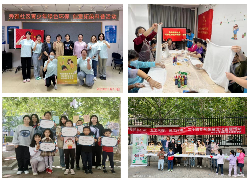 在课程实践教学中,教师依托社区资源,带领学生走进社会,提升学生的专业实践和服务能力。《社区工作》《儿童社会工作》《妇女社会工作》《质性研究方法》《社会心理学》等课程开展了课程实践教学。其中,《社区工作》和《儿童社会工作》的实践贯穿课程始终,效果显著。《社区工作》课程实践中,教师指导学生深入到朝阳区大屯街道各社区,开展丰富多彩的主题活动,帮助学生了解社区工作的内容和方法,学会运用社区工作方法开展社会工作服务。《儿童社会工作》的课程实践中,教师带领学生进行校外参访,深入社区开展调研,立足儿童和家庭发展的实际需求设计并开展社会工作专业服务。课程实践教学的开展,促进了学生专业实务能力的提升。