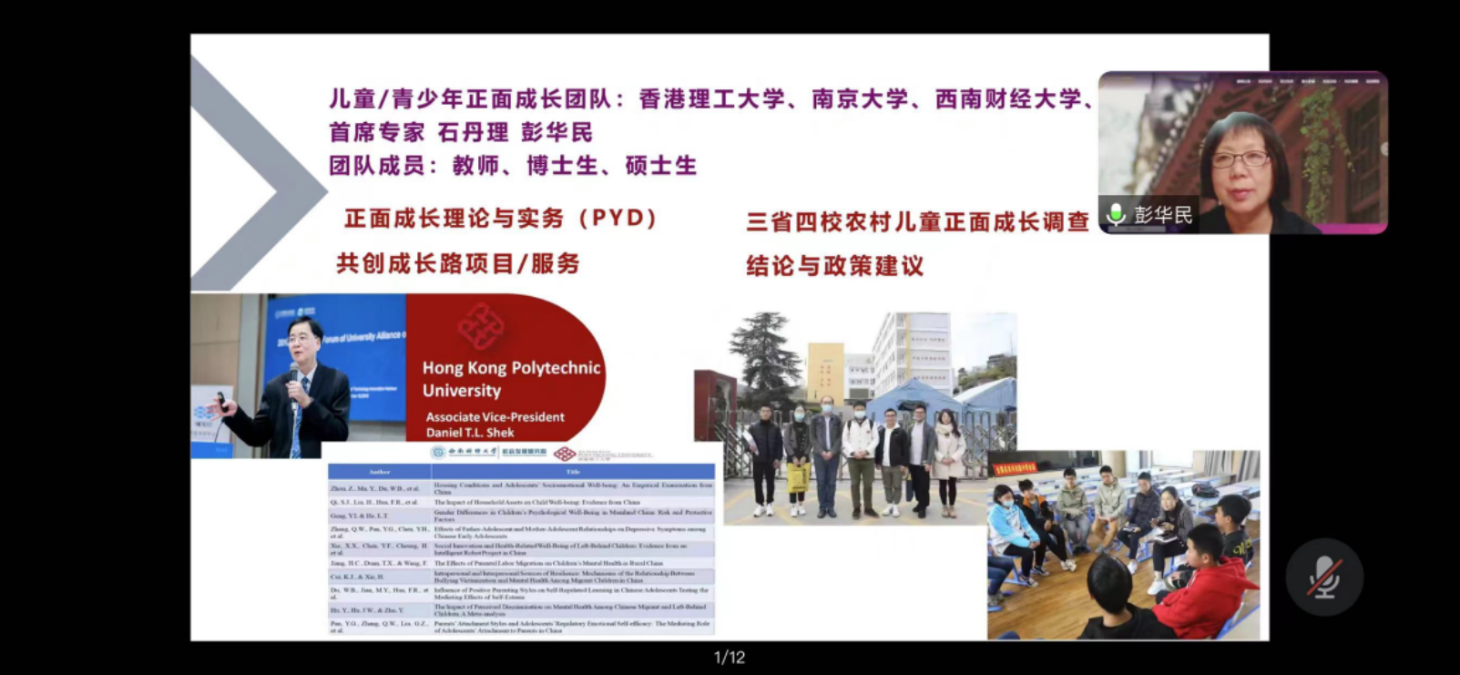 本次讲座中,彭华民教授以“中国农村欠发达地区青少年正面成长理论与实务研究“为题,用理论和实务相结合的形式阐明了青少年正面成长理论,及其对中国农村欠发达地区儿童/青少年的社工实践。彭教授指出,在中国农村欠发达地区,虽然农村儿童/青少年的基本生存需要得到满足与保障,但其能力发展依然是值得重视的问题。以儿童/青少年正面成长理论(PYD)为核心的共创成长(农村版),为农村困境儿童/青少年提供专业的正面成长能力建设服务。此外,强化家庭为本的农村困境儿童/青少年发展服务,优化学校环境提升儿童/青少年积极发展的能力,整合资源提升困境儿童/青少年关爱服务的可及性,亦是PYD理论的目标。