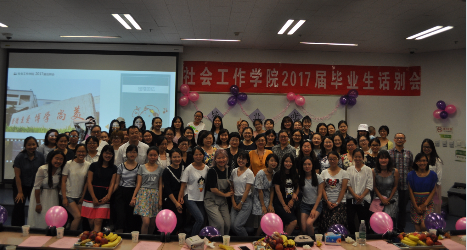 2017年7月3日傍晚,社会工作学院在教图楼213教室举行2017届毕业生话别会。学校副院长刘梦、社会工作学院全体教师和2017届硕士和本科毕业生参加了话别会。
