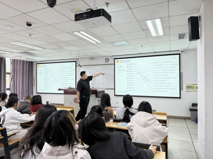李老师生动讲解了二十四节气的起源、划分依据及丰富的文化意义,同时分享了节气养生等二十四节气实用指南,让同学们深刻体会到传统文化在当下的价值,深化了对节气内涵的理解。