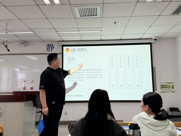 本次活动邀请到了朝阳区团区委青春讲师团中来自心声社会工作事务所的李睿老师和郝殿乔老师,社会工作学院党总支书记巫晓莲老师、团总支书记兼辅导员郭雪莲老师出席活动,同学们积极响应,踊跃参与。活动分为诗韵知时、节气万象、笔绘四时、时令共情四个环节开展,由李睿老师担任主讲。