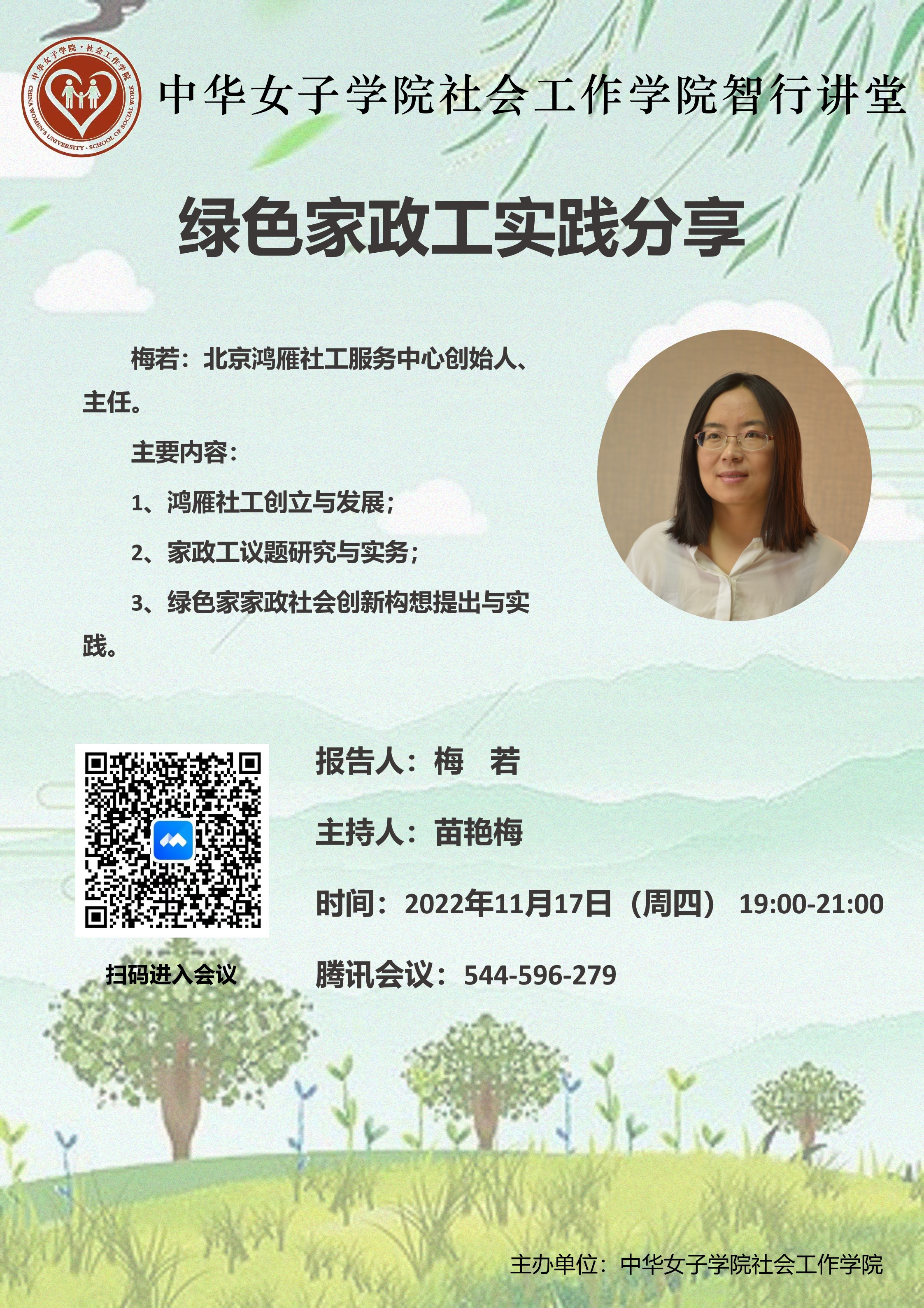 社会工作学院智行讲堂讲座通知:绿色家政工实践分享