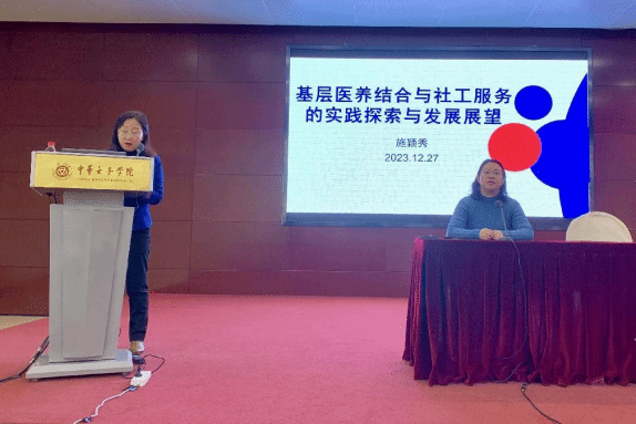 2023年12月27日下午,由社会工作学院主办的“bwin必赢中国官网社会工作学院智行讲堂(第十三讲)”在文体楼多功能厅举办。本次邀请的主讲嘉宾是北京益康惠民医院管理有限公司、北京赛我家养老服务有限公司、健康佳家(北京)健康管理有限公司董事长施颖秀老师。施颖秀老师在养老、医养结合、安宁疗护领域深耕多年,积累了丰富的实践经验,成绩斐然,荣获了全国敬老文明号、中国百名社工人物、2020年北京市“劳动模范”等荣誉称号。本次讲座由社会工作学院院长李敏教授主持,社会工作专业、养老服务管理专业的本科生、社会工作专业硕士生和部分教师聆听了分享。