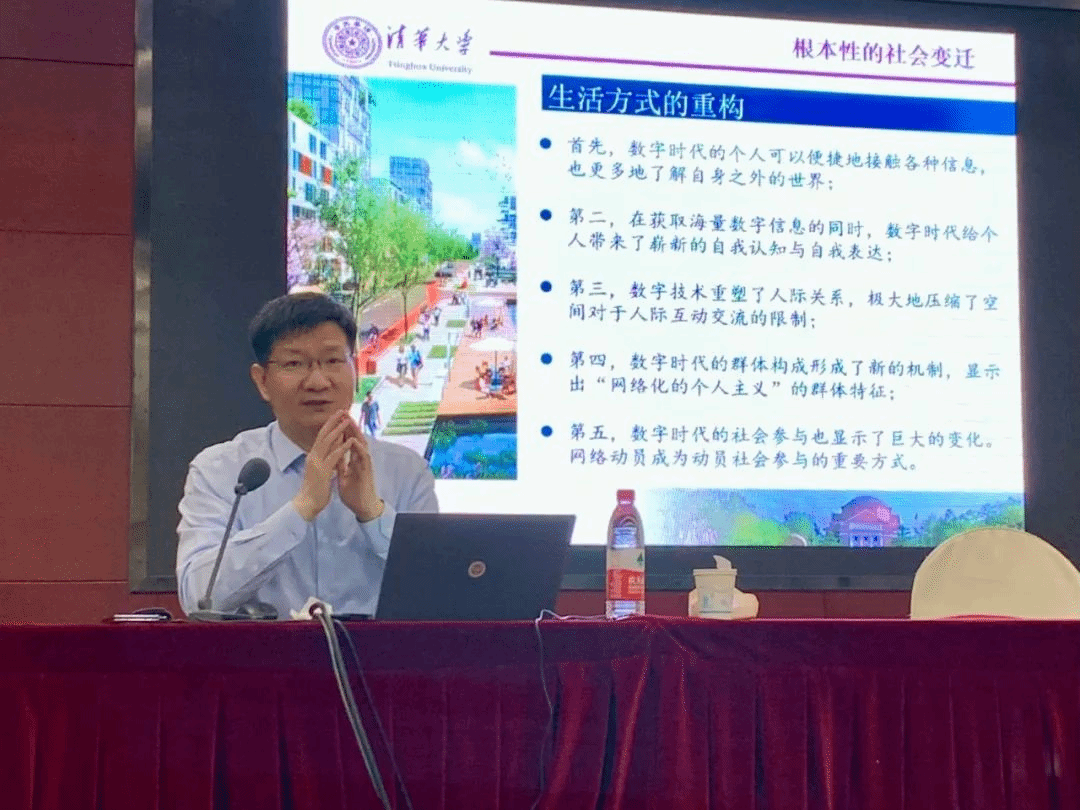 王天夫教授的讲述始于对“数字时代会带来什么样的改变”“数字化技术到底带来了哪些机制的改变”等问题的回答。他通过对农业社会、工业社会与数字社会中社会连接模式的对比,以经验生活案例引导同学们理解数字社会所带来的生产方式重组、生活方式重构、社会机制变革等根本性的社会变迁。王天夫教授指出数字技术的崛起不仅是一次技术革新,更预示着人们生活方式变革和现代社会结构的裂变,这将引领我们步入一个全新的社会形态。这种变迁要求社会科学重新梳理思考其基础性问题,同时也迫切需要数字社会研究发掘新的议题,开拓新的研究范式、方法和路径。而中国当前的数字社会研究,不仅拥有丰富的经验材料,在理论探索上也展现出巨大潜力。面对数字时代社会变迁这一历史机遇,王天夫教授鼓励同学们有意识地体验、关注数字社会的发展变化,与此同时保持反思立场,积极投身到数字社会的建设与研究之中。