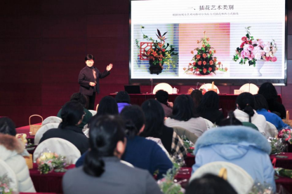 “花韵悦姿绽芳华”——手提花篮花艺美学沙龙由国家二级花艺技师、花艺高级讲师、中国插花协会常务理事李丽仙老师主讲。李老师从插花的类别、花材的识别处理办法、插花的基础知识以及花篮的制作方法等四个方面给大家做了分享。大家跟着老师的节奏,一边选择花枝设计造型、搭配色彩、细心修剪,在馥郁花香中感悟取舍之道、领会古雅之美,在插花劳作中寻找乐趣,从作品欣赏中获得满足,在相互交流中接近距离,美丽的花篮传递了美好和祝福。