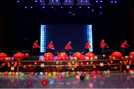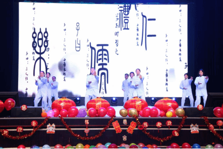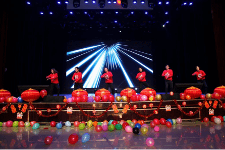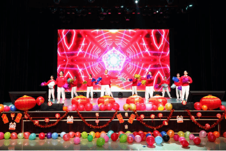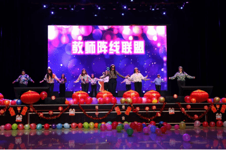 联欢会开始前,生动的暖场视频用一张张鲜活的照片带领大家回忆2023 年的足迹,在场的老师们纷纷在视频中寻找自己的身影,回忆过去一年的欢乐与收获。随着倒计时钟声的最后一声结束,艺术舞蹈协会的开场舞《相亲相爱九州同》以轻快优美舞姿、欢快的旋律为大家送上了美好的新年祝愿,瞬间点燃了现场气氛。