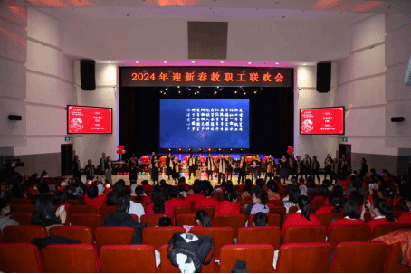 瑞兔辞旧去,龙腾新年来。2024年1月12日下午,“躬耕教坛启新程 凝心聚力续华章”2024年迎新春教职工联欢会在学校礼堂隆重举行。党委书记、院长刘利群,党委副书记赵浩,副院长薛小丽、周应江、韩燕,党委副书记兼纪委书记邢慧丽等校领导出席联欢会,与来自20个分工会的近四百名教职工们欢聚一堂,共同迎接龙年新春的到来。