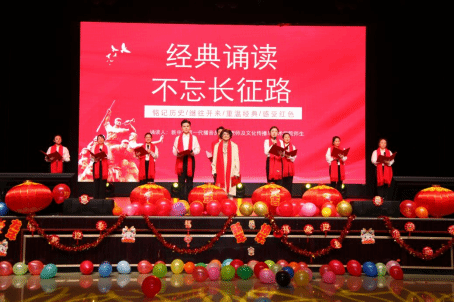 由葛兰老师领诵,文传学院分工会和艺术学院分工会的老师们诵读经典《不忘长征路》,声音铿锵有力、慷慨激昂,带领在场的观众在回顾红色经典中重温革命先辈精神,传承红色基因。