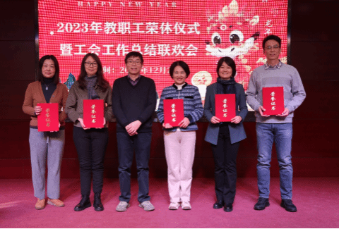 周应江宣读2023年从教满30年教职工名单、北京市“青教赛”“青管赛”获奖名单和北京市教育系统“育人先锋”获奖名单并颁奖。韩燕宣读第二届中直运动会和妇联拔河比赛获奖名单并颁奖。邢慧丽宣读北京市“先进职工小家”“暖心驿站”获奖名单并颁奖。张霞宣读校级优秀工会干部和“温馨之家建设”先进个人,校级“先进职工小家”获奖名单并颁奖。叶水平宣读2023年考核优秀文体协会名单并颁奖。李莹宣读第三届教代会优秀提案和提案落实部门名单并颁奖。获奖集体和个人纷纷上台领奖并与领导合影留念。