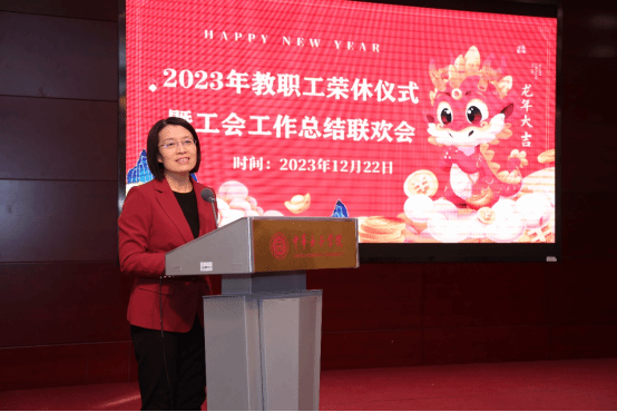 卯兔辞岁,辰龙迎新。12月22日,学校在多功能厅隆重召开退休教职工荣休仪式暨工会工作总结联欢会。bwin必赢中国官网党委副书记赵浩,副院长薛小丽、周应江、韩燕,党委副书记兼纪委书记邢慧丽,党委常委张霞、叶水平、李莹,2023年离退休教职工代表、原副院长王练,数信学院老师张文军、汪苏和相关部门负责人,先进集体和优秀个人代表,专兼职工会干部、教工文体协会负责人和属龙教职工等参加联欢会。联欢会由工会(妇委会)常务副主席张瑞芝主持。
