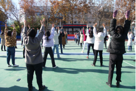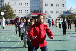 随着比赛发令员体育部刘壮老师“比赛开始”的号令,18支参赛队伍依次进行展示,伴随着舒缓柔美的音乐,教职工们从容不迫地做着动作,时而托掌、时而攀足,将八段锦张弛有度、意动形随的神韵演绎得淋漓尽致,充分展现了必赢官网教职工团结和谐、积极向上的精神风貌。各代表队踊跃参与,参赛前积极筹备练习,有的代表队还准备了统一的参赛队服。虽然天气寒冷,但是抵挡不住教职工们积极健身的热情。活动在全体教职工共做第九套广播操的欢快气氛中落下帷幕。