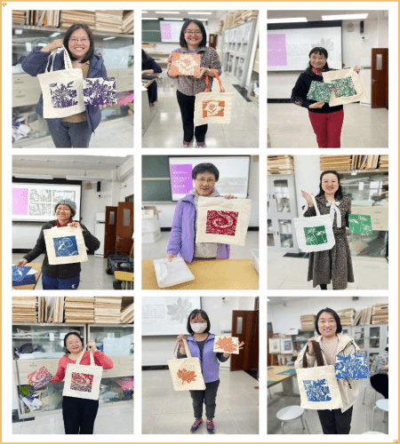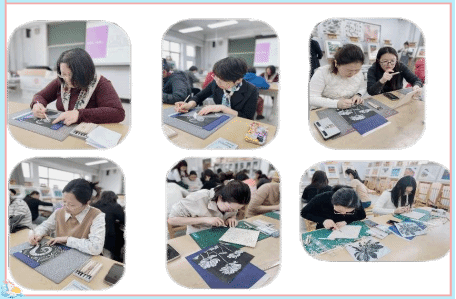 在“探索非遗之美——沉浸式版画艺术体验”活动中,学校特别邀请儿童发展与教育学院艺术学博士马丽娜老师现场指导,分三个场次带领教职工们感受传统版画艺术的独特魅力。马老师首先从版画的演进到版画的种类向大家普及了版画的相关知识,并重点介绍了我国女版画家们的成就和事迹,鼓励女教工们要勇于踏上寻美之旅。老师们在专业指导下亲手制作版画,体验非遗技艺的精妙之处,感受传统文化的深厚底蕴。活动现场欢声笑语不断,老师们纷纷表示,通过亲手创作,不仅放松了身心,更深刻体会到非遗文化的艺术价值。