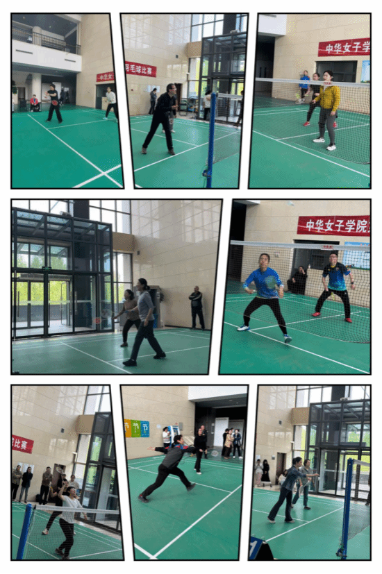 比赛设男子双打、女子双打、混合双打三个项目,采用淘汰赛的形式,各组选手都进行了激烈的角逐。赛场上,老师们褪去课堂上的严谨儒雅,化身活力十足的运动员,各展身手,高远球、扣杀、劈吊等技巧轮番上演,引得师生阵阵喝彩。