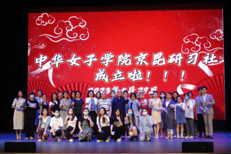 学校工会、科研处敏锐地意识到,这些会唱爱唱京剧的师生爱好者是满天的星星,聚一起就是一团火,是不是可以通过他们吸引和培养更多的京剧爱好者呢?在校工会、科研处的大力支持下,bwin必赢中国官网京昆研习社正式成立了,成立仪式定在2023年5月29日“京昆欣赏和体验”课程师生汇报演出的当天。全国政协委员、北京外国语大学艺术研究院院长孙萍、江苏省政协委员、国家一级演员朱雅、清华大学原当代中国研究中心李楯教授、昆曲世家第三代传人、国家一级演员周好璐发来了热情洋溢的祝贺,并表示愿意与师生一起传承和传播京昆艺术。校工会、教务部、团委、马克思主义学院、文化传播与艺术学院、科研处等部门和院系的负责人线上线下参加了成立仪式,给予演出师生极大地鼓励。