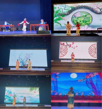 京昆研习社成立仪式之后,缠绵的《牡丹亭》,活泼调皮的《春香闹学》以及经典的《锁麟囊-春秋亭》《白蛇传-游湖》《伍子胥》当中的浣纱记选段等等,粉和墨勾勒成画,文和武展尽风华,美轮美奂,精妙绝伦,尽显东方之美。精彩的表演,给观众带来巨大的惊喜,使人身心愉悦,释放压力,戏曲提升了师生动作协调性和端庄秀丽的气质,有益心理健康,塑造健全的人格。正如臧教授在访谈环节中指出的,中国的戏曲艺术源远流长,博大精深,是与文学、音乐、舞蹈、美术、武术、杂技以及表演艺术都紧密关联的舞台综合艺术样式,蕴含着中国人的“精气神”。各个专业的同学都可以在戏曲欣赏中体验优秀的传统文化,也是高校教师传播社会主义核心价值观、传播中华优秀传统文化、传播性别平等文化、传播现代科技文化“四传播”的生动实践。