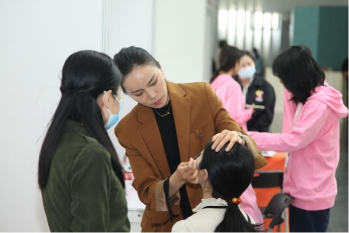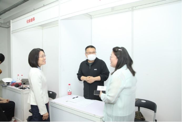 双选会特邀丰台区人力资源和社会保障局职业能力建设中心副主任张笑男(高级职业指导师)为学生进行一对一简历修改指导,张老师细致入微的讲解使在场的同学们受益匪浅,对简历撰写的技巧和要点有了更具体、清晰的认识。同时,双选会还邀请了礼仪老师为学生进行一对一面试形象礼仪指导及妆容示范,也受到在场同学们的热烈欢迎。
