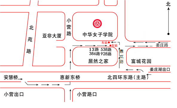 地铁5号线到惠新西街北口,西北口出站,换乘386路公共汽车到育慧东路站下车即到。