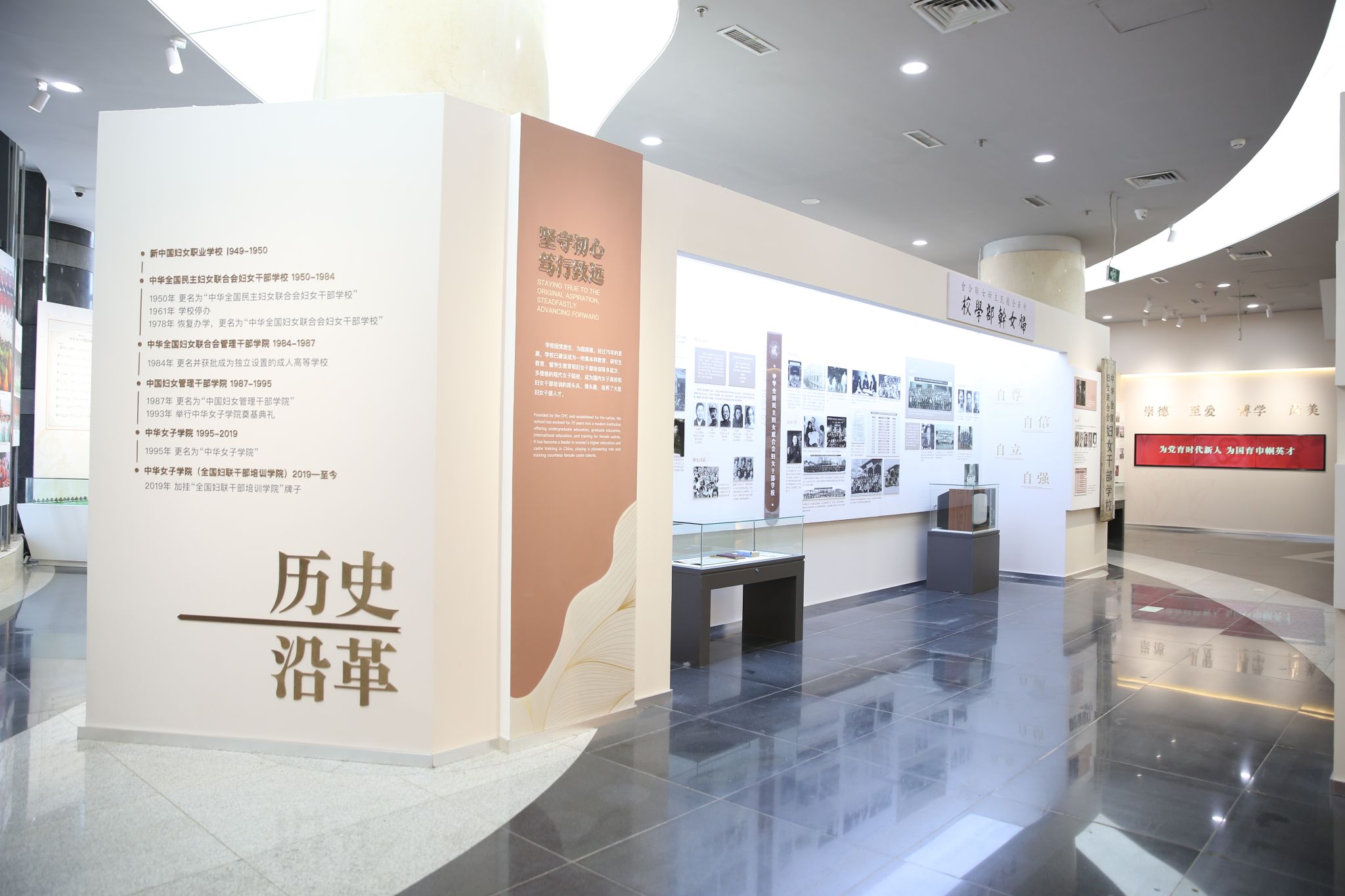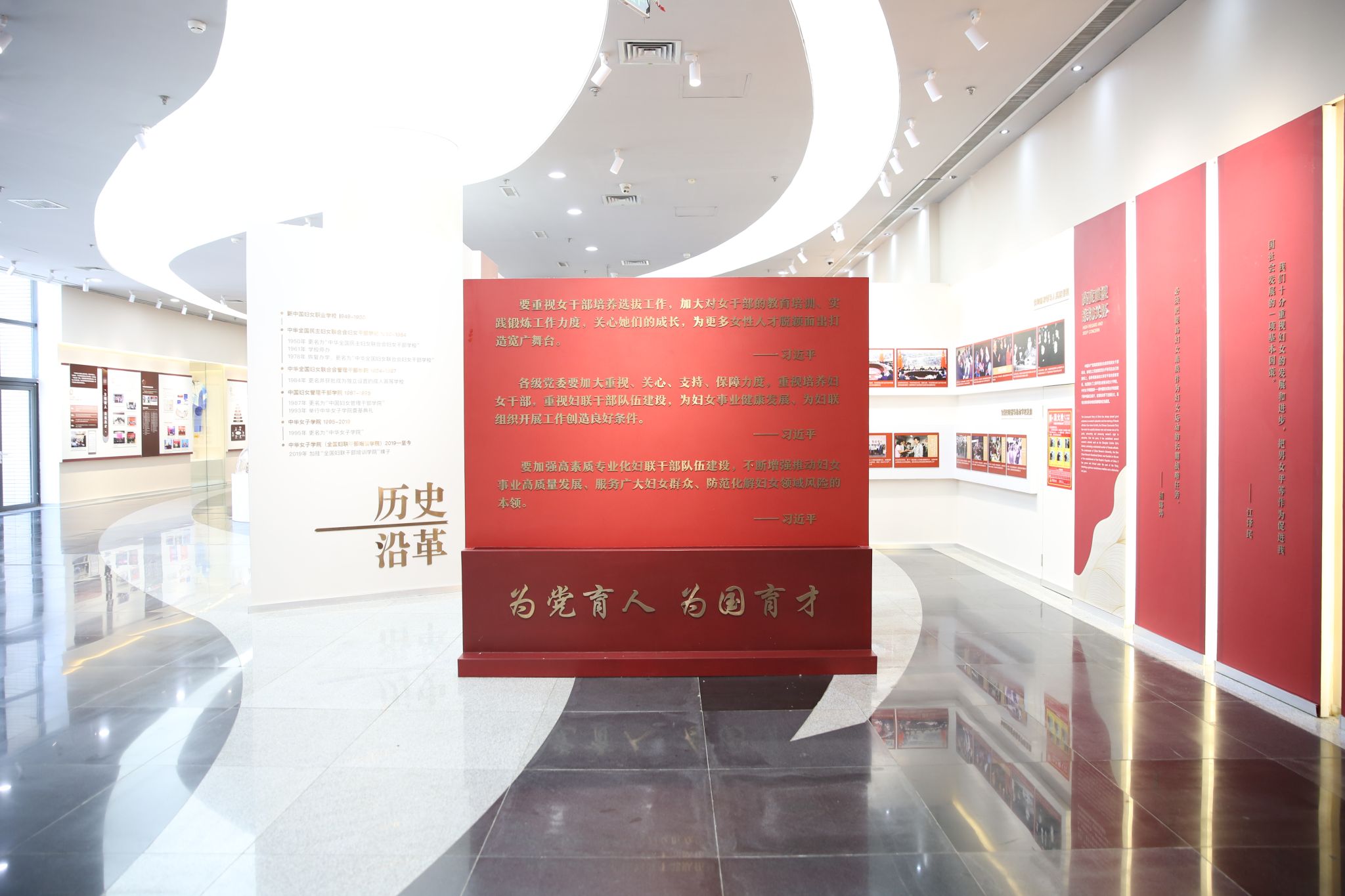 序厅部分展示习近平总书记关于妇女干部培养和关于教育的重要讲话摘录以及校史馆序言。