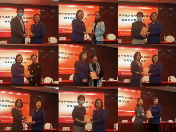 仪式由育慧书院执行院长陈曦主持,她首先就书院践行指南——“崇德、至爱、博学、尚美”女院校训展开讲话,指出育慧书院是以“专业+卓越”课程的培养模式,致力于把学生培养成为具有领导力、公益心、团队精神以及具有独立健全人格,远大人生目标的育慧人。紧接着陈曦院长对书院导师制进行了介绍,并赋予了导师帮助育慧书院学生提升专业水平,为升学和就业打好基础的责任意义。最后,陈曦再次强调育慧书院“我与书院,卓越同行”的口号,呼吁大家一起努力建设好育慧书院,并祝愿每一位育慧书院学生都能如绽放的玫瑰般,开放在祖国需要的各行各业,让女院的芬芳飘香世界。