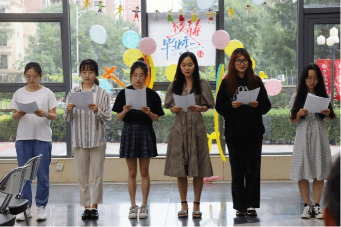欢送活动由刘欣雨等五位同学演唱歌曲《新的天地》拉开了序幕,点燃了现场的气氛,寄语学姐展望未来,开拓新天地;刘佳慧等六位同学一腔热血朗诵《起航》,引发在场同学对美好未来的畅想;17级学生罗西陆、金雨蒙带来的舞蹈《next level》,用优美的律动将晚会推向高潮。