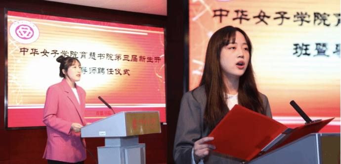 20级新生代表许付彤同学发言,她从自身经历出发,强调了每一代青年都有自己的机遇和责任,明确树立每个时间段的目标至关重要,需在自己所处的时代坐标上谋划人生,树立理想。同时倡议全体同学应成为有知识有担当的新时代女性,共同承担起振兴中华的责任,成长为无愧于自我、无愧于时代、无愧于人民与国家的栋梁之才!