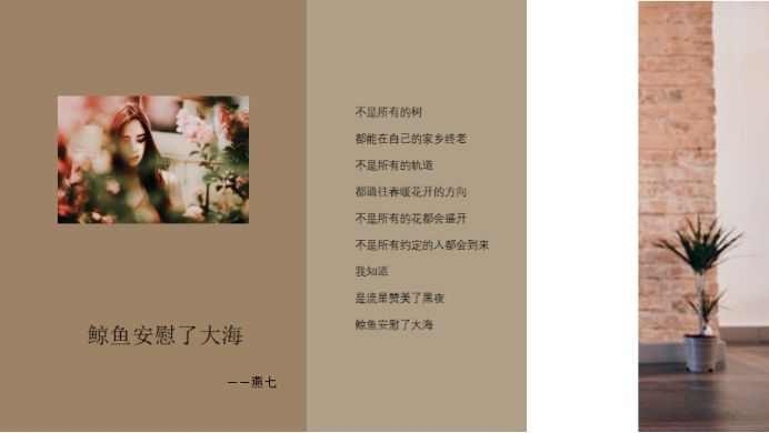 燕七这首治愈系现代诗《鲸鱼安慰了大海》启示了我,我们有时要接受生活的真相,罗曼罗兰说:“世界上只有一种真正的英雄主义,那就是看清生活的真相之后,依然热爱生活。”那些未尽的事物真正构成了我们的生活,“一生都在半途而废,但一生都怀抱热望”。或许当年那篇作文我未曾写到结尾;或许那道数学题我只解了一半;或许那位朋友只陪我走到半程便各自天涯了;或许《红楼梦》我知道到第一百一十五回便再也没有翻开……可是这有什么关系呢?我们不仅仅需要一张完美的成绩单,我们只需要享受生命的过程,当下的自己,去看一看月亮,等一场日落,追一阵晚风,或者,静下来,读一本书。不必多思索意义,存在就是意义。我想闲暇时,“一川烟草,满城风絮,梅子黄时雨”,我想此刻,真正属于我。
