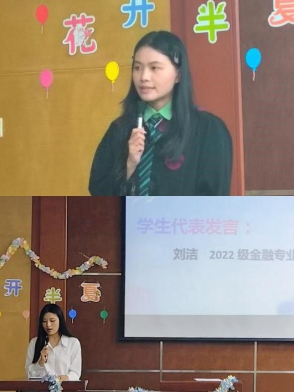 2020级网络与新媒体专业的徐文琪,作为毕业生代表,在发言中回顾了自己在育慧书院的学习和生活经历。她提到了参与的各类活动,如爬水长城团建、观赏戏剧歌剧、女性主义电影观赏等,这些经历丰富了她的知识视野,并加深了她对校训“自尊、自信、自立、自强”的理解。她强调了育慧书院为她提供的教育资源和优秀师资的指导,使她更加坚定女性力量的信念。她表示,这些经历和信念将伴随她走向更广阔的世界。2022级金融专业的刘洁,作为在校生代表发言,她表达了对毕业生学姐们真挚的祝福。她认为学姐们在学术、实践上的努力和成就,是在校学生的榜样和骄傲。她表示未来将不断传承和发扬育慧书院精神,勇于探索、勤于实践、敢于创新,并以此为行动的指南,走向更加光明的未来。