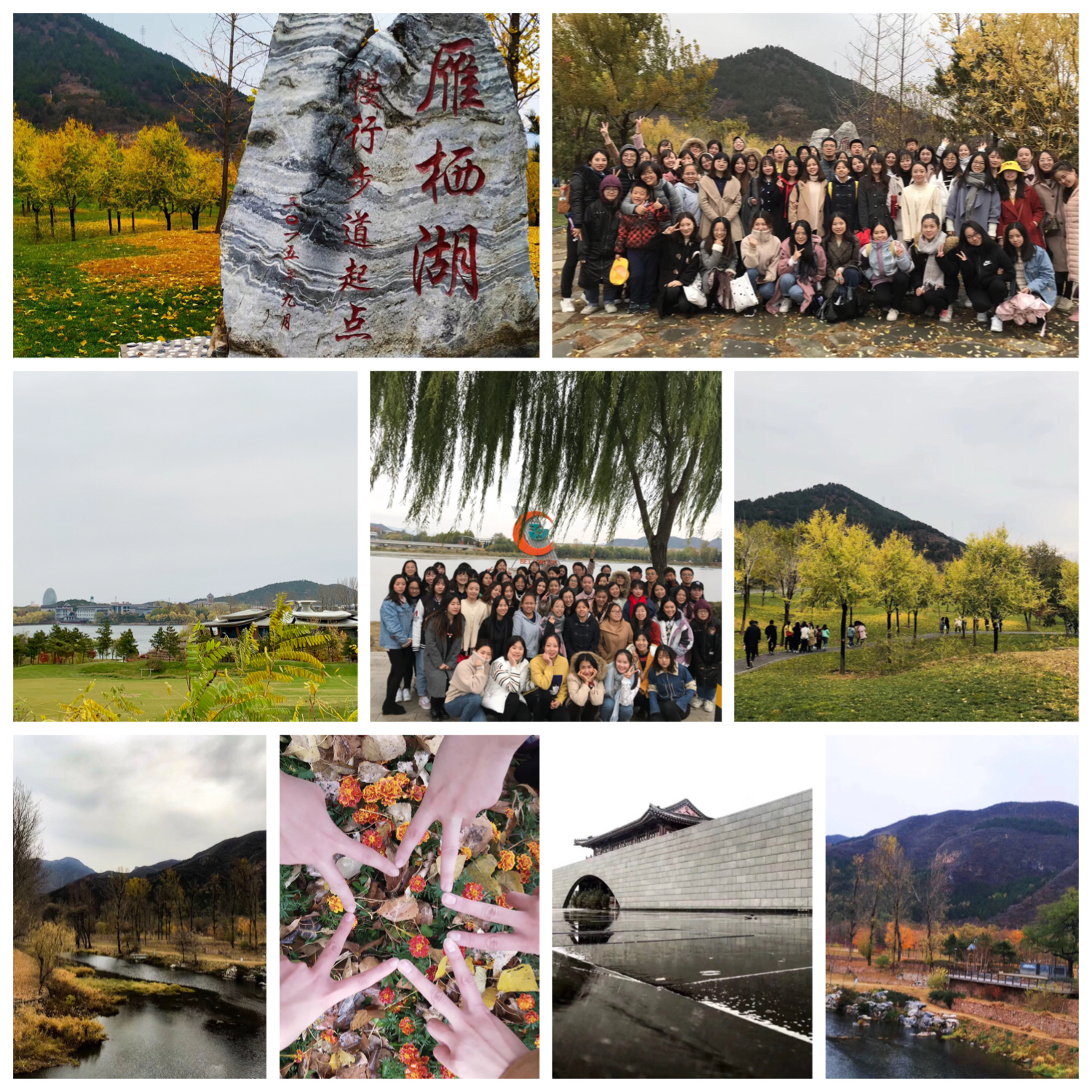 下午同学们临水而行,在雁栖湖景区环湖健步走。雁栖湖三面环山,环境优美,因召开过的APEC会议、“一带一路”高峰论坛而引人关注。徒步中对APEC峰会进行更多的了解,重温会议主旨,为祖国能召开盛会而感到骄傲。踏在金色落叶铺满的道路上,伴随着秋雨凉意,同学们欢声笑语结。随后,同学们又抵达怀柔区95年世妇会纪念公园,在观赏美景同时,更加身临其境地体会到了,在妇女发展上这些会议背后所承载的具有深刻意味的社会意义和价值。