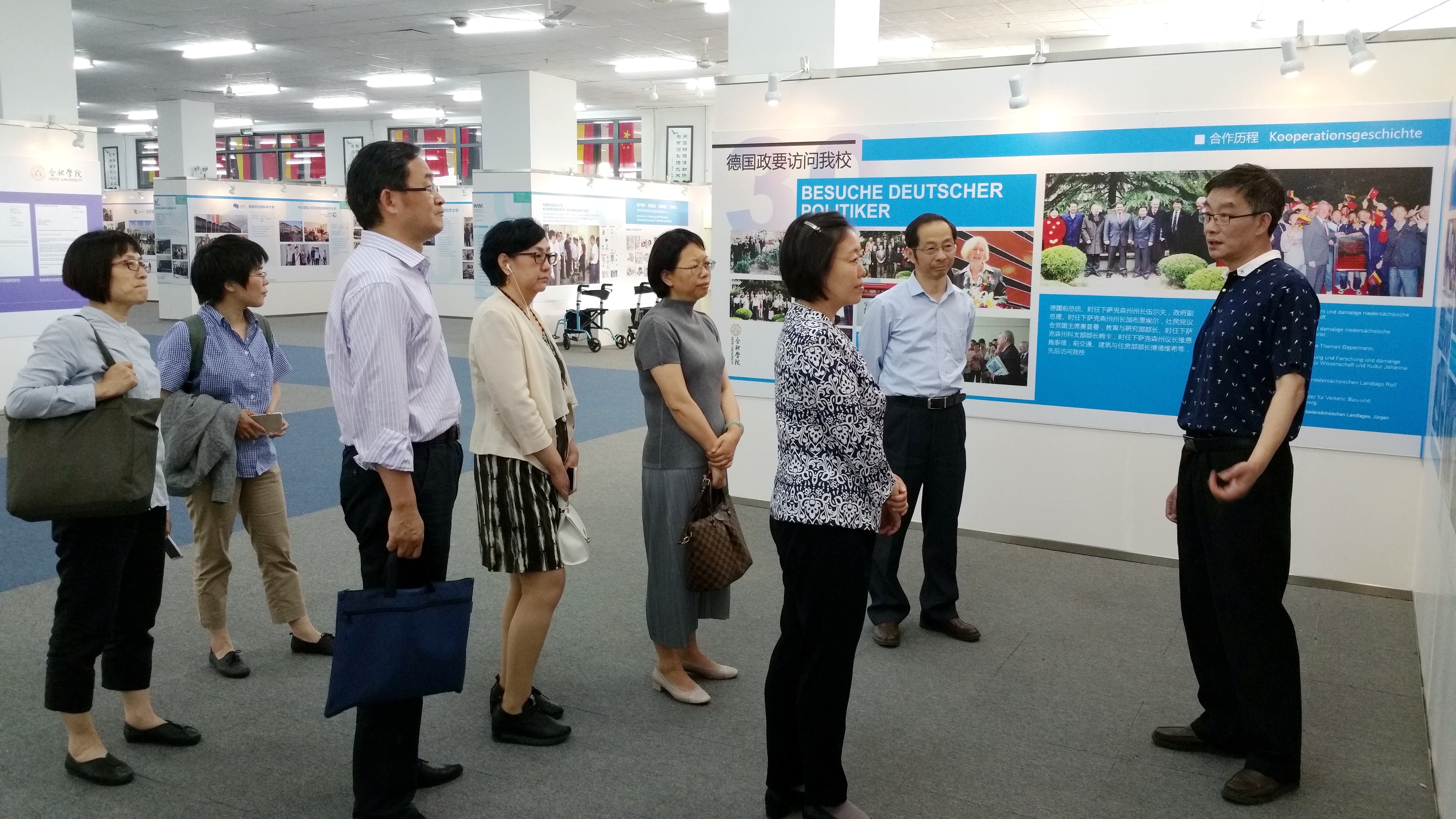 合肥学院党委书记蔡敬民详细介绍了合肥学院“地方性、应用型、国际化”的办学定位、办学理念,重点阐述了构建应用型人才培养体系的“八个转变”:办学定位向“应用型”转变;专业结构向“需求导向”转变;培养方案由“输入导向”向“输出导向”转变;课程体系由“知识体系”向“能力体系”转变;教学过程“以教为中心”向“以学为中心”转变;师资队伍向“双能型”转变;育人机制向“产学研合作”和“国际合作”两个开放系统转变;质量评价向学生满意和社会满意“两个满意度”转变。教学质量监控与评估处余国江处长作“审核评估内涵释义及迎评工作经验交流”报告。调研组成员结合工作实际,分别与合肥学院相关处室、系部进行了交流,并参观了中德共建合肥学院三十周年成果展和体育馆。